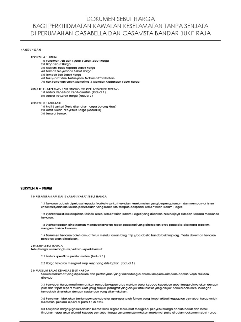 Dokumen Sebut Harga Kawalan Keselamatan Perumahan Casabella Dan Casavista