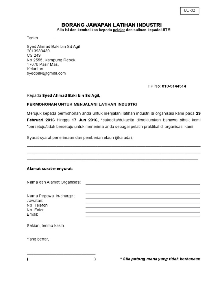 Bli 02 Borang Jawapan Latihan Industri Dari Organisasi