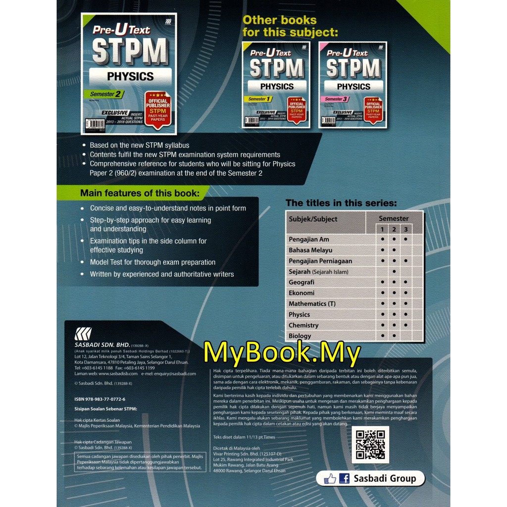 Myb Book Notes Freestanding U Stpm Semester 2 Physics Sasbadi Shopee Singapore