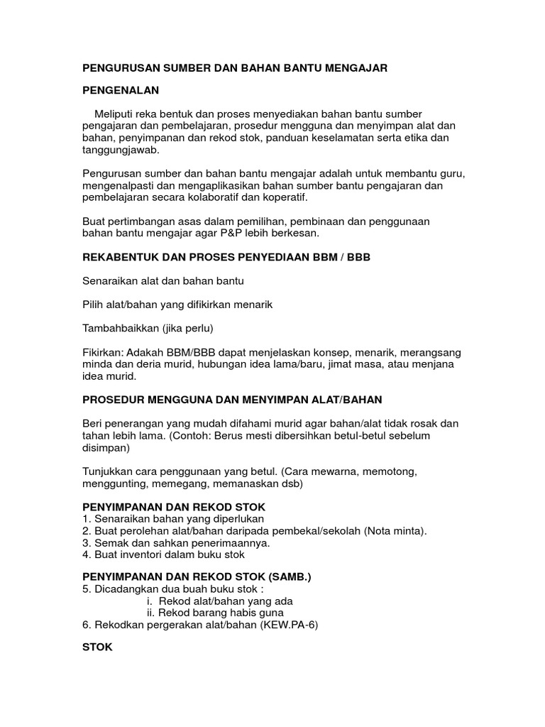 Pengurusan Sumber Dan Bahan Bantu Mengajar