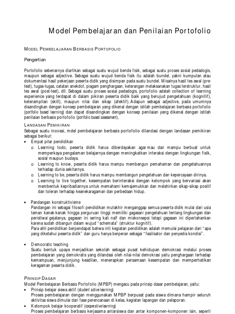 Model Pembelajaran Dan Penilaian Portofolio