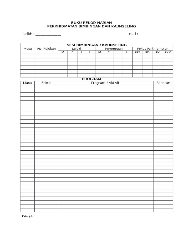 1 Buku Rekod Harian Perkhidmatan Kaunseling
