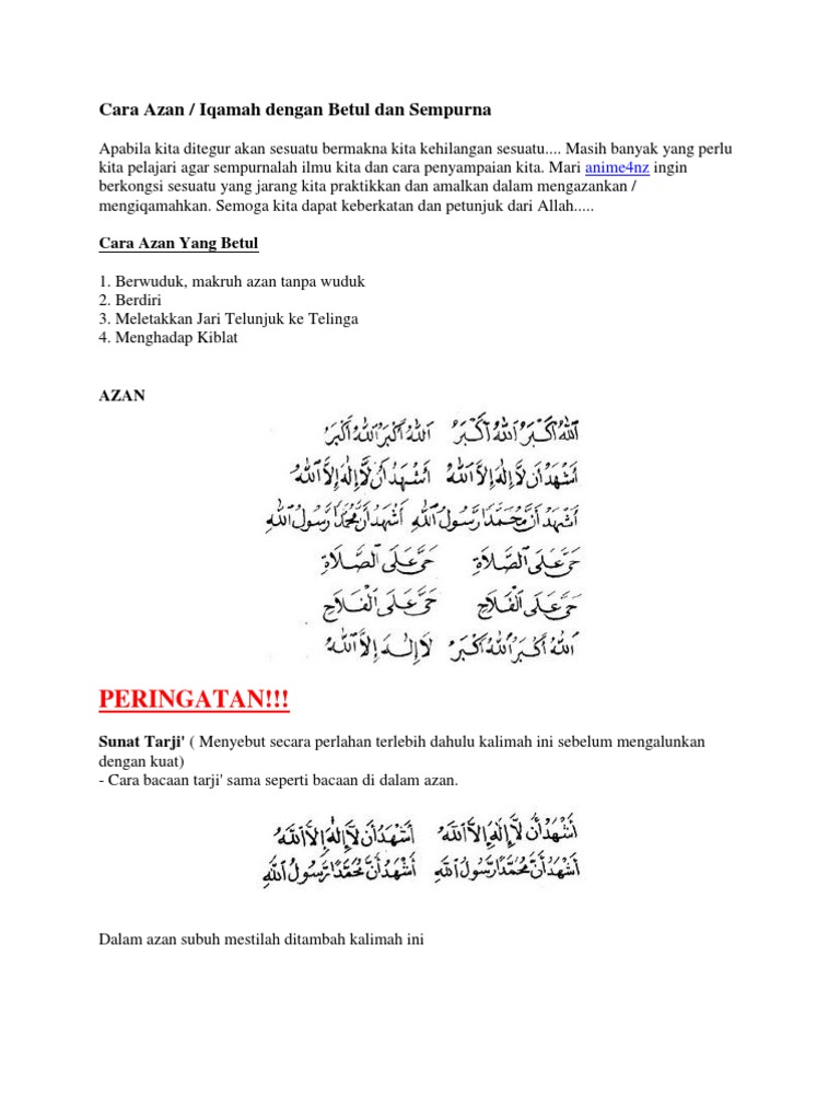 Cara Azan Dan Iqamah Dengan Betul Youtube