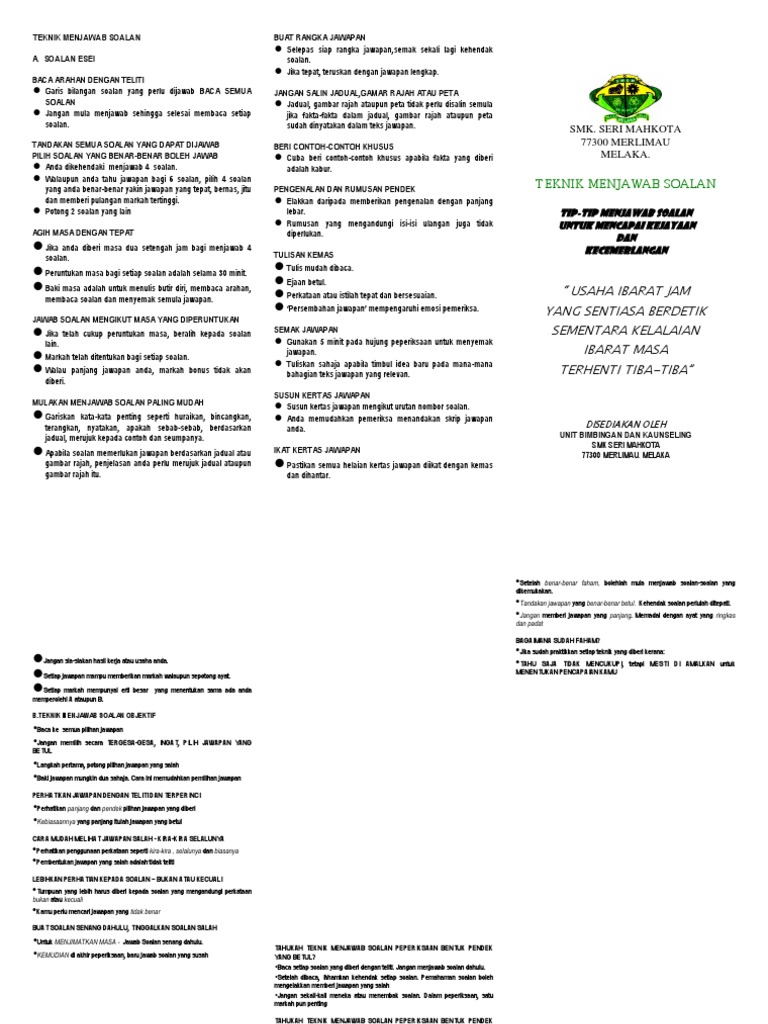 2 Brosur Teknik Menjawab Soalan