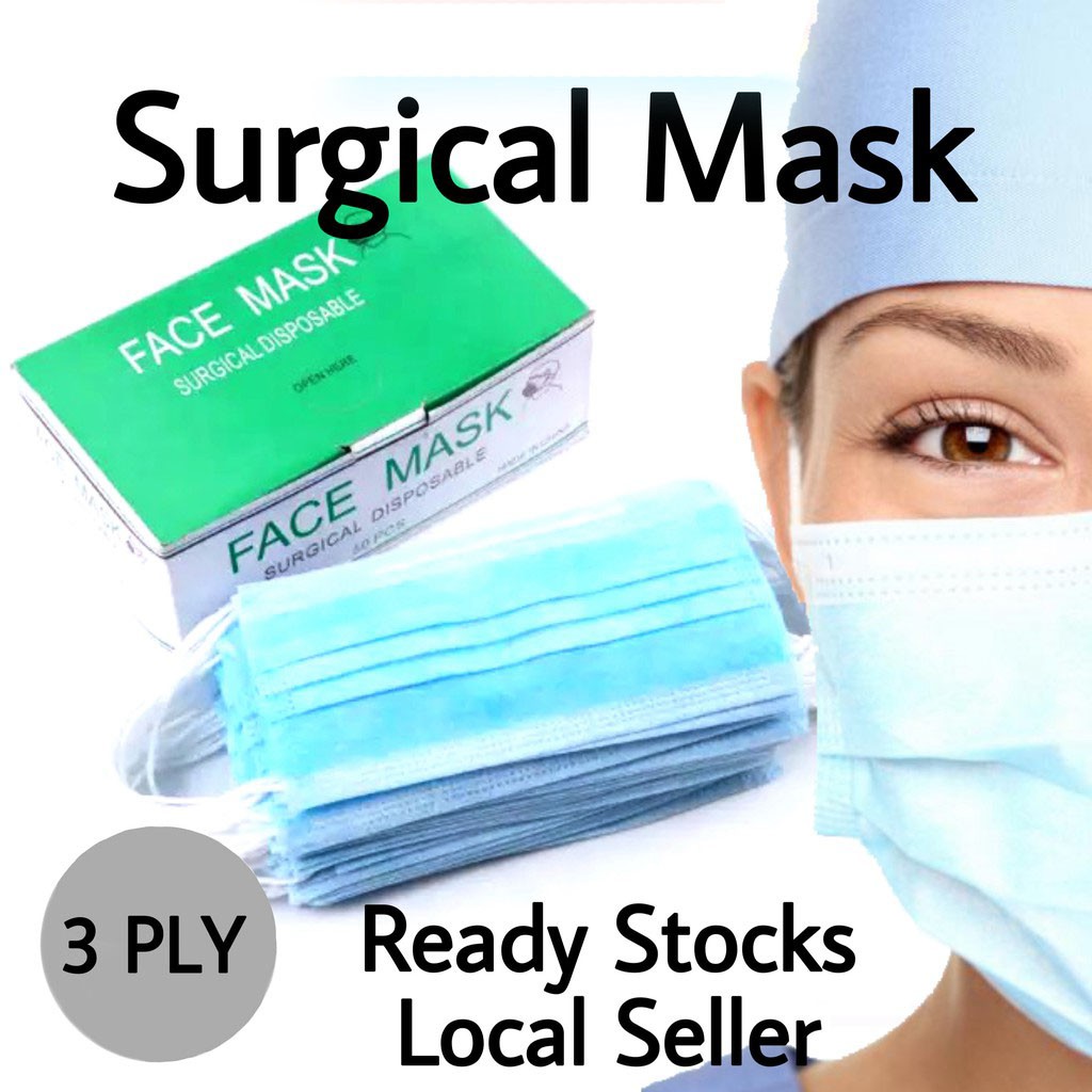 Sg Stock 3 Ply Face Masks Surgical 50 Pcs Box Disposable Earloop Meltblown Cloth Thick Breathable For Protection Shopee Singapore