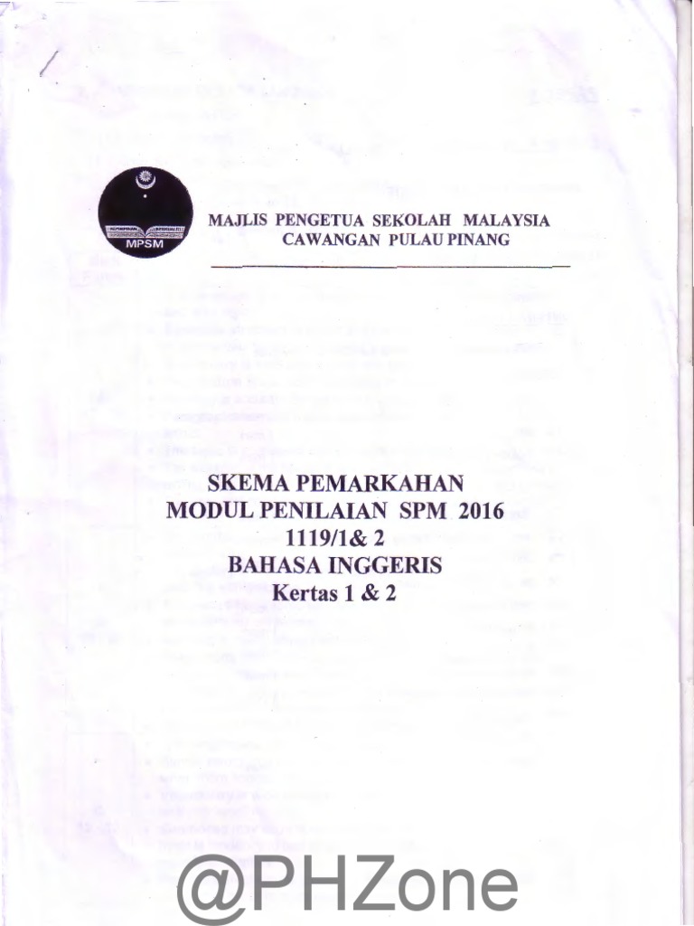 2016 Percubaan Spm Pulau Pinang Bahasa Inggeris Skema Pemarkahan Vocabulary Punctuation