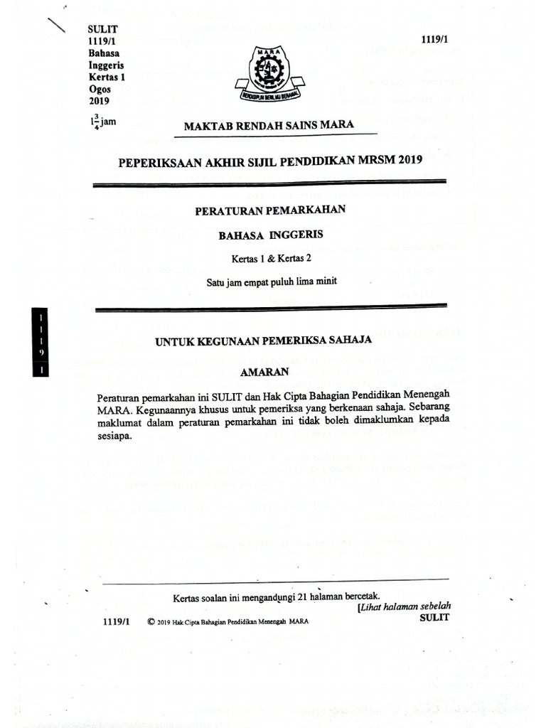 Peperiksaan Akhir Sijil Pendidikan Mrsm 2017 Maktab Rendah Sains Mara Peperiksaan Akhir Sijil Pendidikan Mrsm 2017 Peraturan Pemarkahan Bahasa Melayu Kertas 1 Untuk Kegunaan Pdf Document