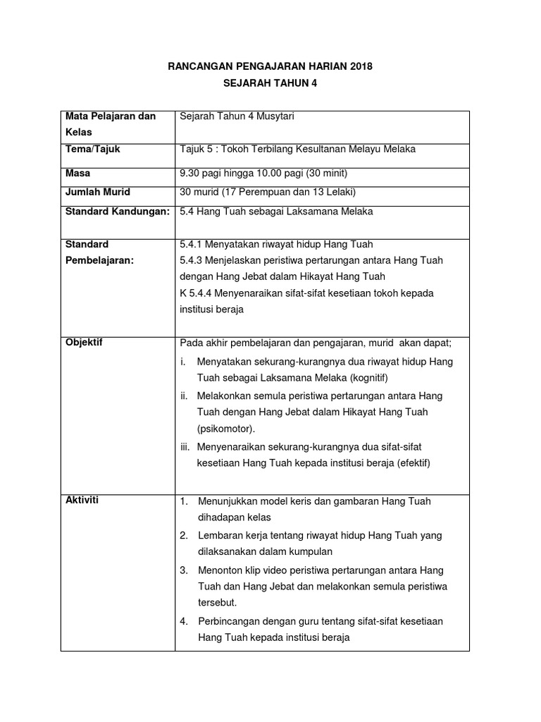 Rph Tahun 4 Hang Tuah Sebagai Laksamana Melaka