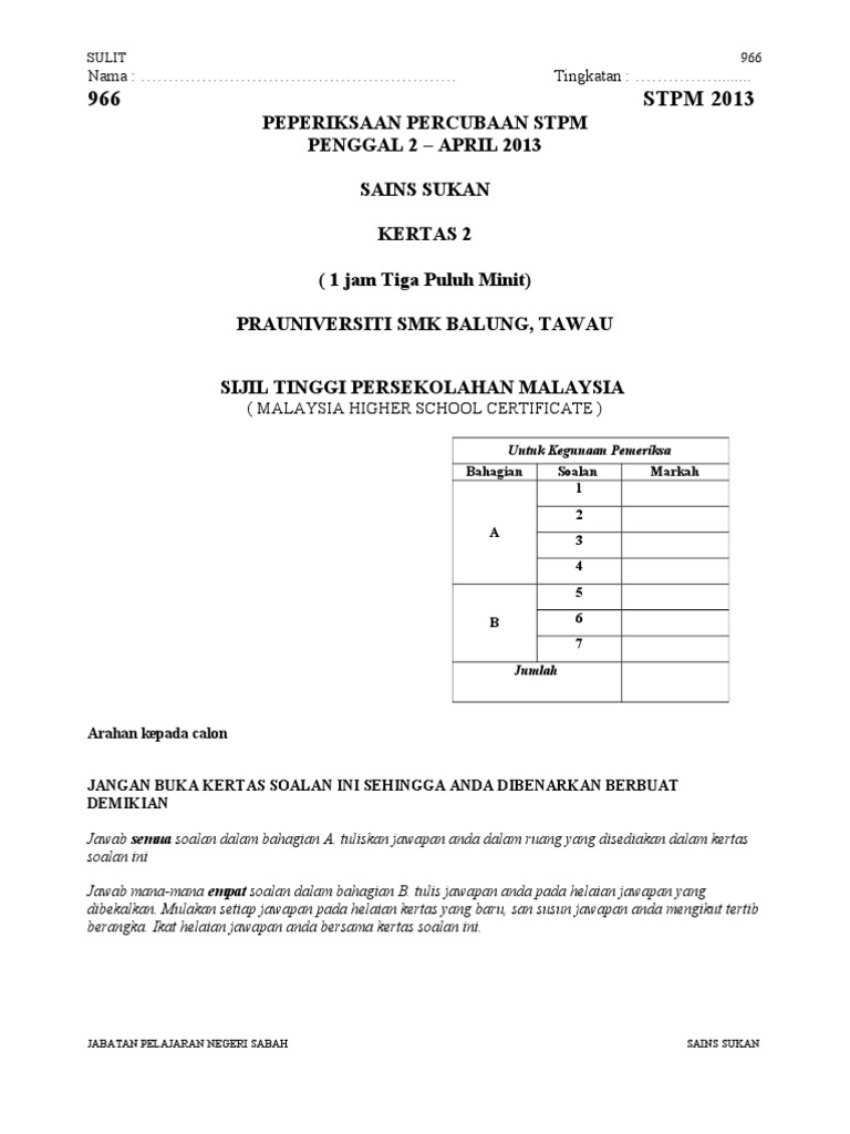 Percubaan Sains Sukan Stpm Sem 1 2013