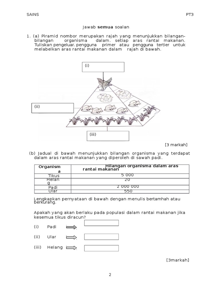 Soalan Sains Tingkatan 2 Dan Skema Jawapan