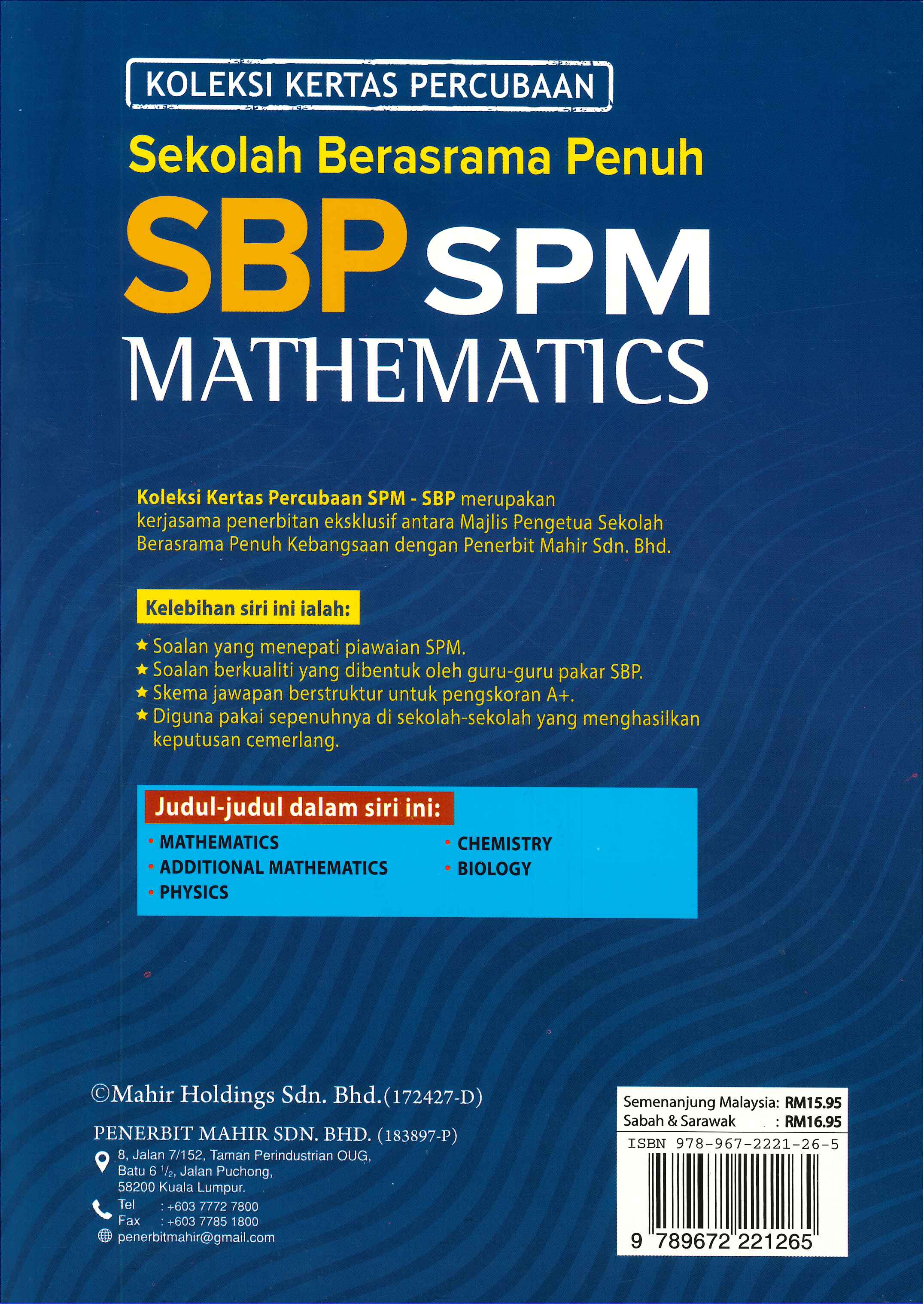 2020 Koleksi Kertas Percubaan Sekolah Berasrama Penuh Sbp Spm Mathematics Dwibahasa Shopee Singapore