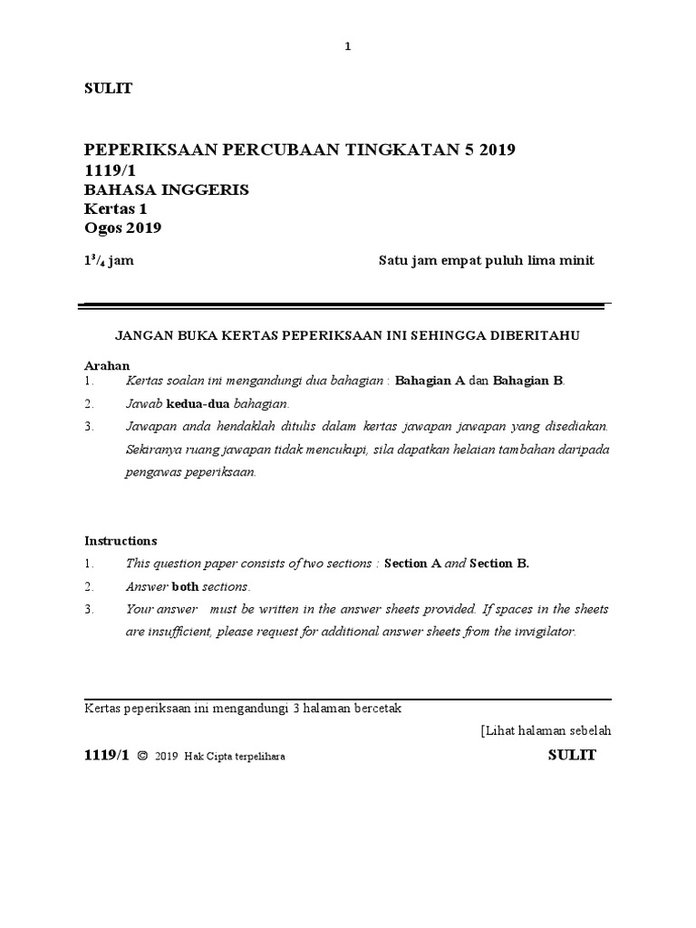 Soalan Percubaan Spm 2019 Negeri Sabah Kosong Kerji