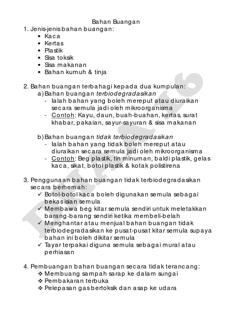 Nota Sains Tahun 6 Unit 9 Bahan Buangan Chang Tun Kuet