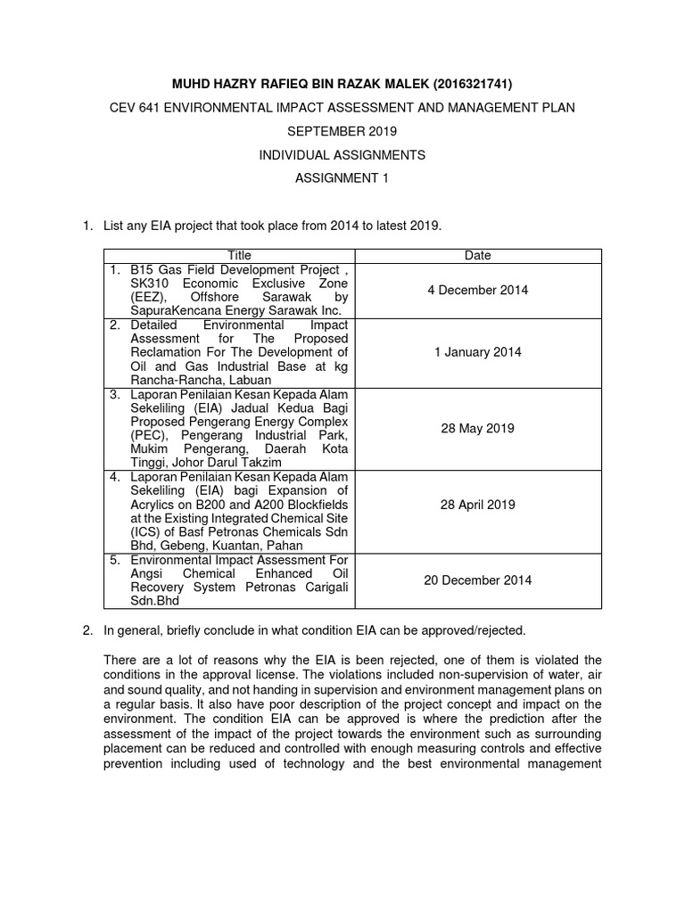 Assignment 1 Eia Environmental Impact Assessment Nature