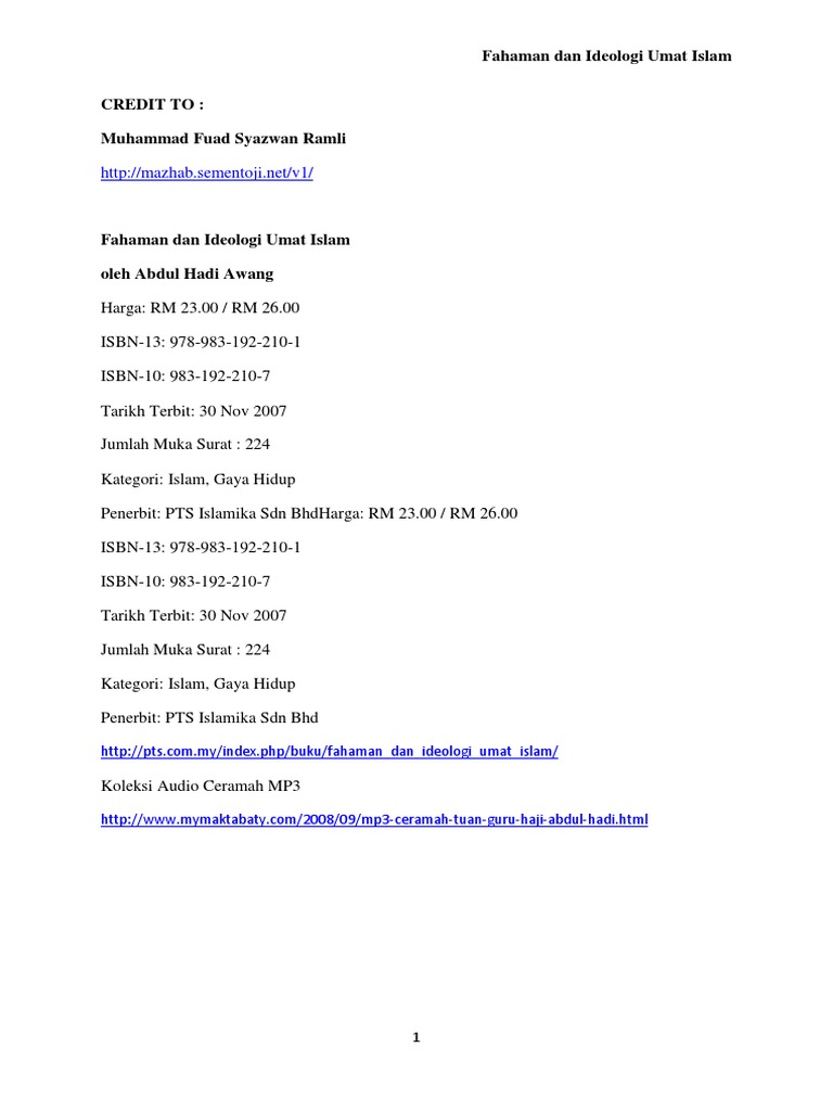 Fahaman Ideologi Umat Islam By Abdul Hadi Awang