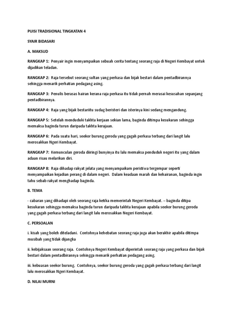 Puisi Tradisional Tingkatan 4 Syair Bidasari