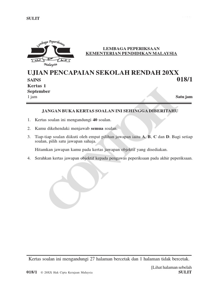 Instrumen Contoh Sains Kertas 1 Upsr 2016 Versi Bm