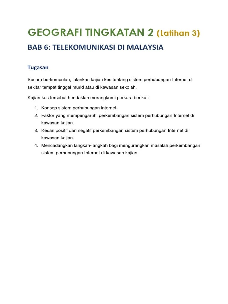 Latihan Esei Bab 6 Telekomunikasi Di Malaysia Docx