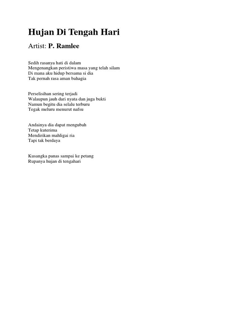 Hujan Di Tengah Hari Artist P Ramlee