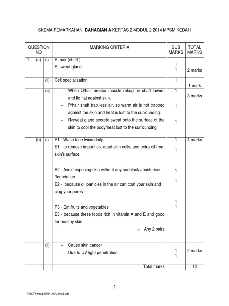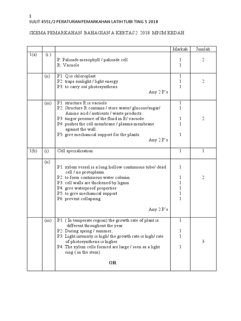 Skema Jawapan Kertas Percubaan Spm Biologi Negeri Kedah