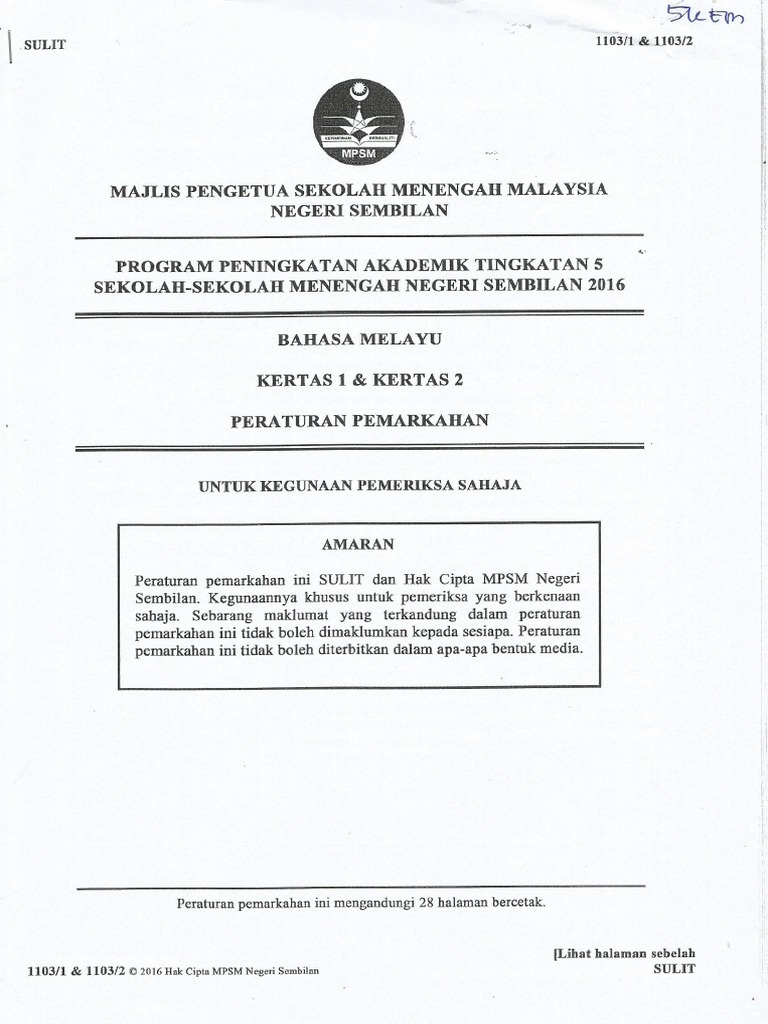 Skema Jawapan Percubaan Spm Bahasa Melayu Negeri Sembilan 2017