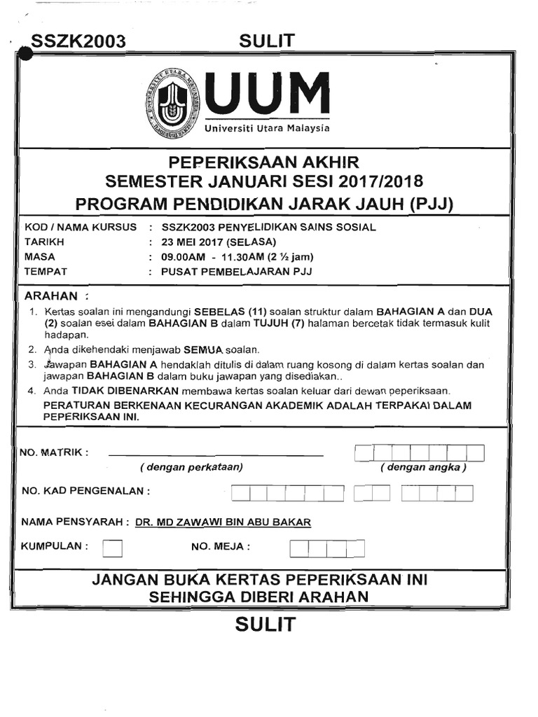 Soalan Dan Jawapan Penyelidikan Sains Sosial