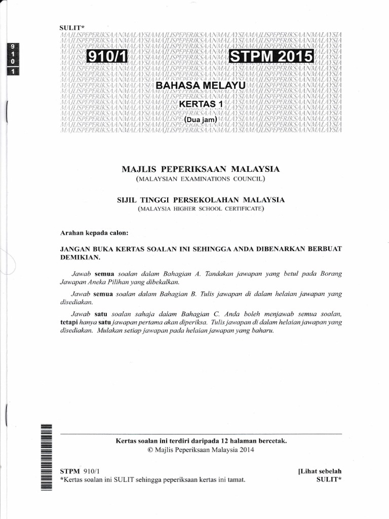Kertas Soalan Peperiksaan Tahun Tahun Lepas Stpm Bahasa Melayu Semester 1 2 3