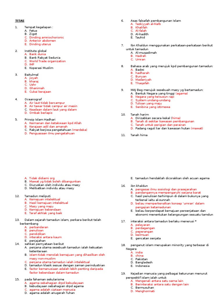Contoh Atau Sample Soalan Berserta Jawapan Peperiksaan Subjek Tamadun Islam Dan Tamadun Asia