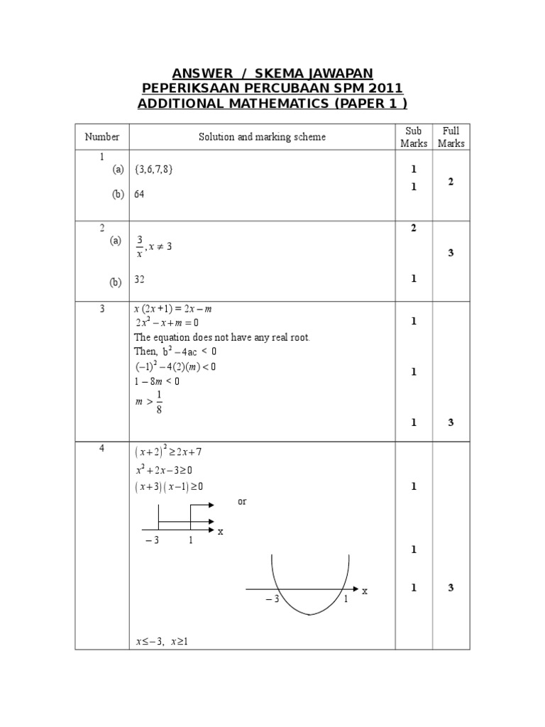 Answer Skema Jawapan Peperiksaan Percubaan Spm 2011 Additional Mathematics Paper 1 Differential Topology Algebra