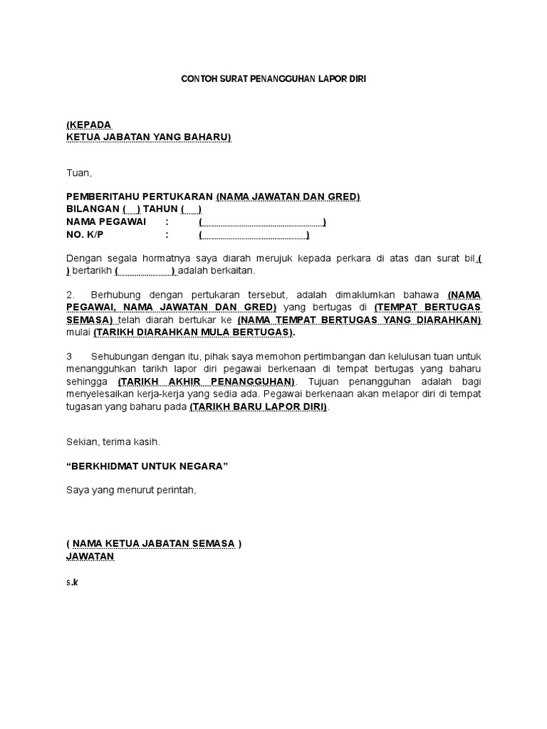 Tangguh Contoh Surat Penangguhan Lapor Diri