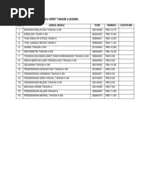 Senarai Harga Buku Kssr Tahun 4