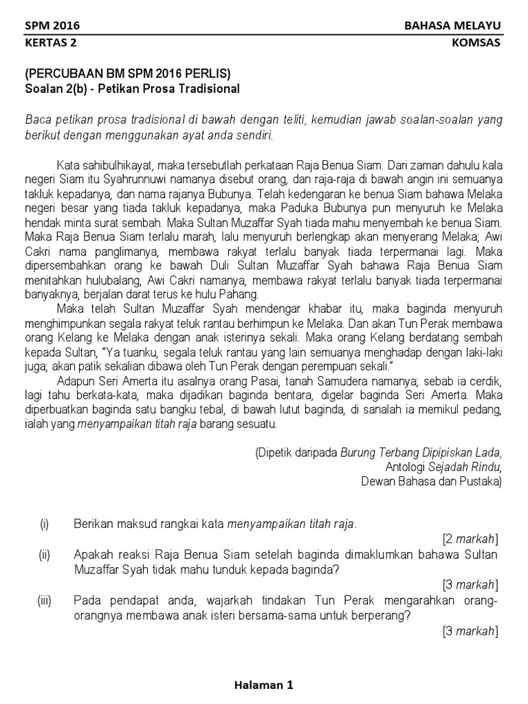 Koleksi Soalan Komsas 2 B Percubaan Spm 2016 Se Malaysia