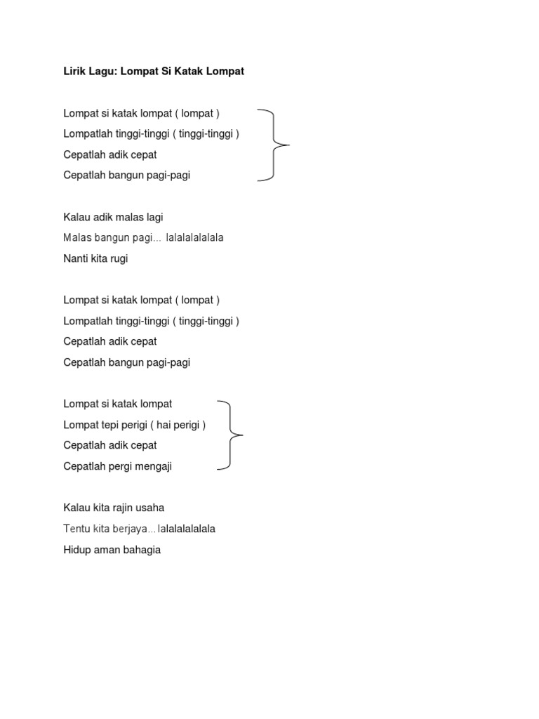 Lirik Lagu Lompat Si Katak Lompat