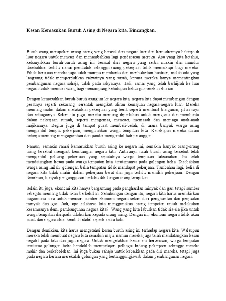 Kesan Negatif Kemasukan Pekerja Asing Stpm